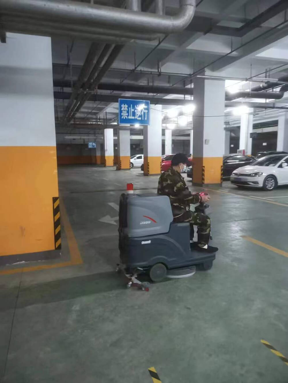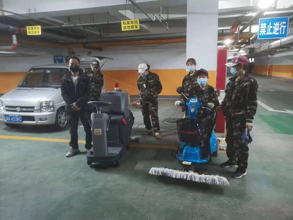 车库专业清洁方案设计,洗地吸干机顺利交机。